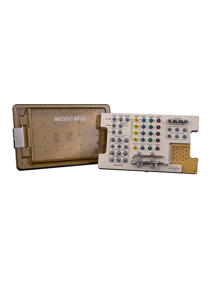 本套器械為WEGO牙種植體系統(tǒng)專用外科種植手術(shù)器械,采用顏色標(biāo)記的設(shè)計(jì),讓手術(shù)流程一目了然;整套器械由瑞士專業(yè)牙科工具供應(yīng)商制造,加工精良,設(shè)計(jì)合理,精確耐用;滅菌盒可反復(fù)高溫壓力滅菌,便于清洗,內(nèi)置配件盒,方便器械滅菌與使用。